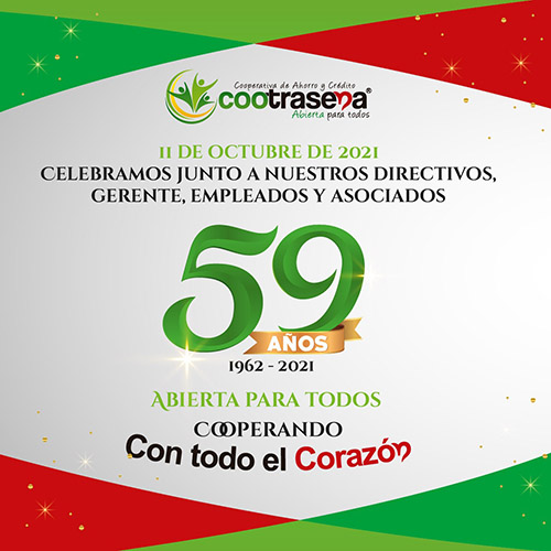 Todos y cada uno de nosotros hemos colocado nuestro granito de arena para que la Cooperativa COOTRASENA crezca y se consolide durante tantos años. Por eso la sentimos tan nuestra y tan parte de nuestras vidas.