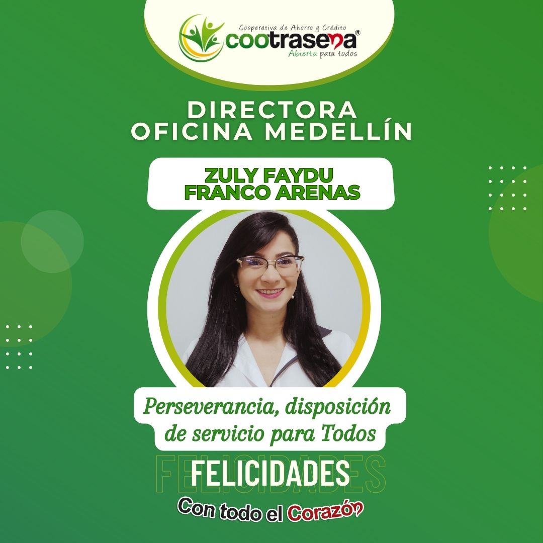 Felicidades a Zuly Faydu Franco Arenas, nuestra nueva Directora de la Oficina de Medellín